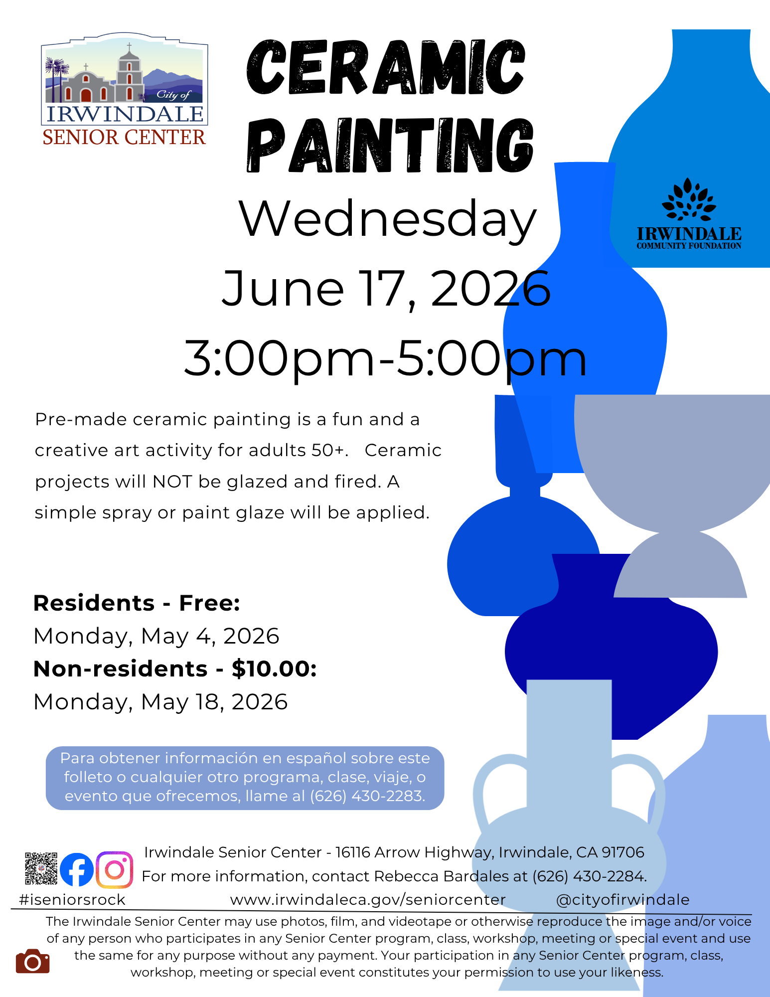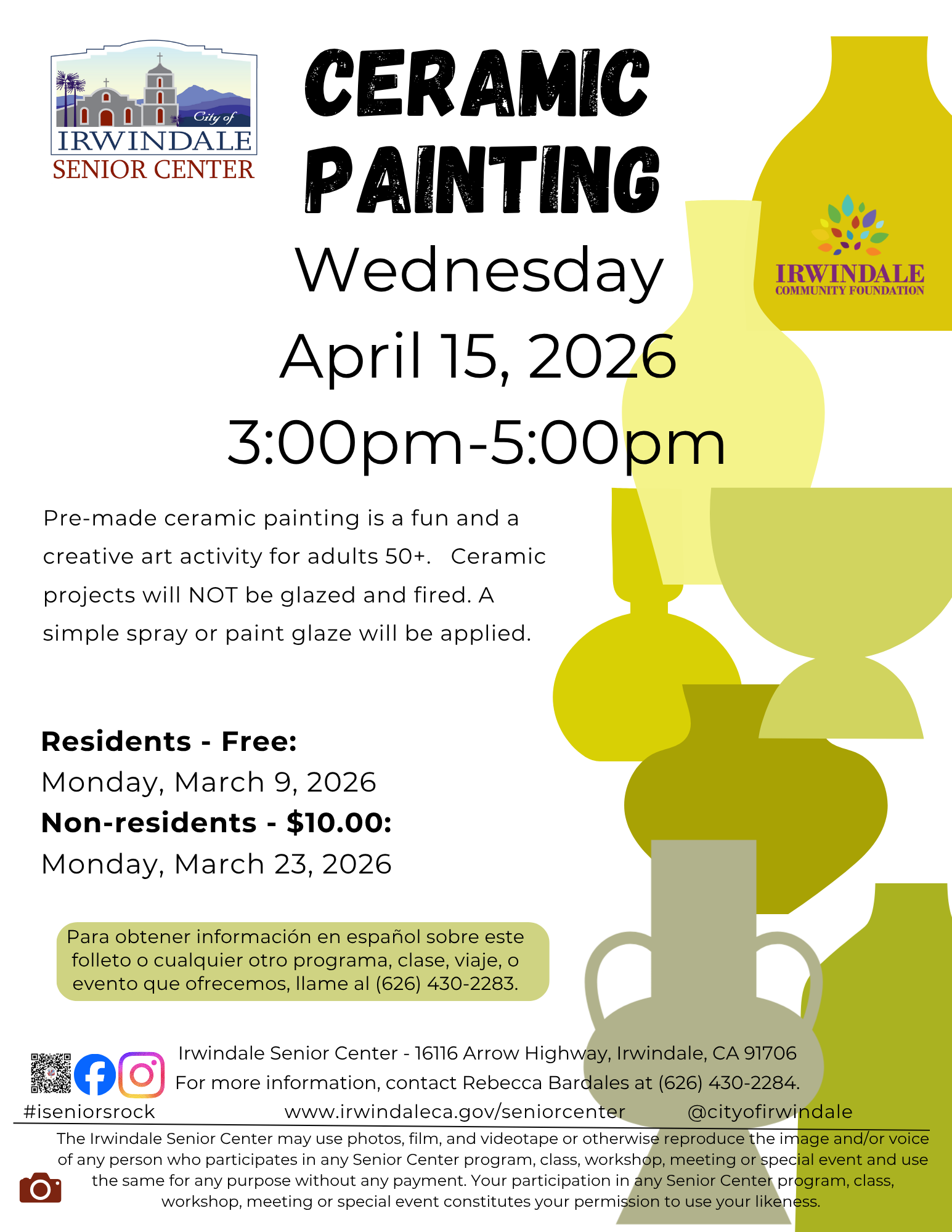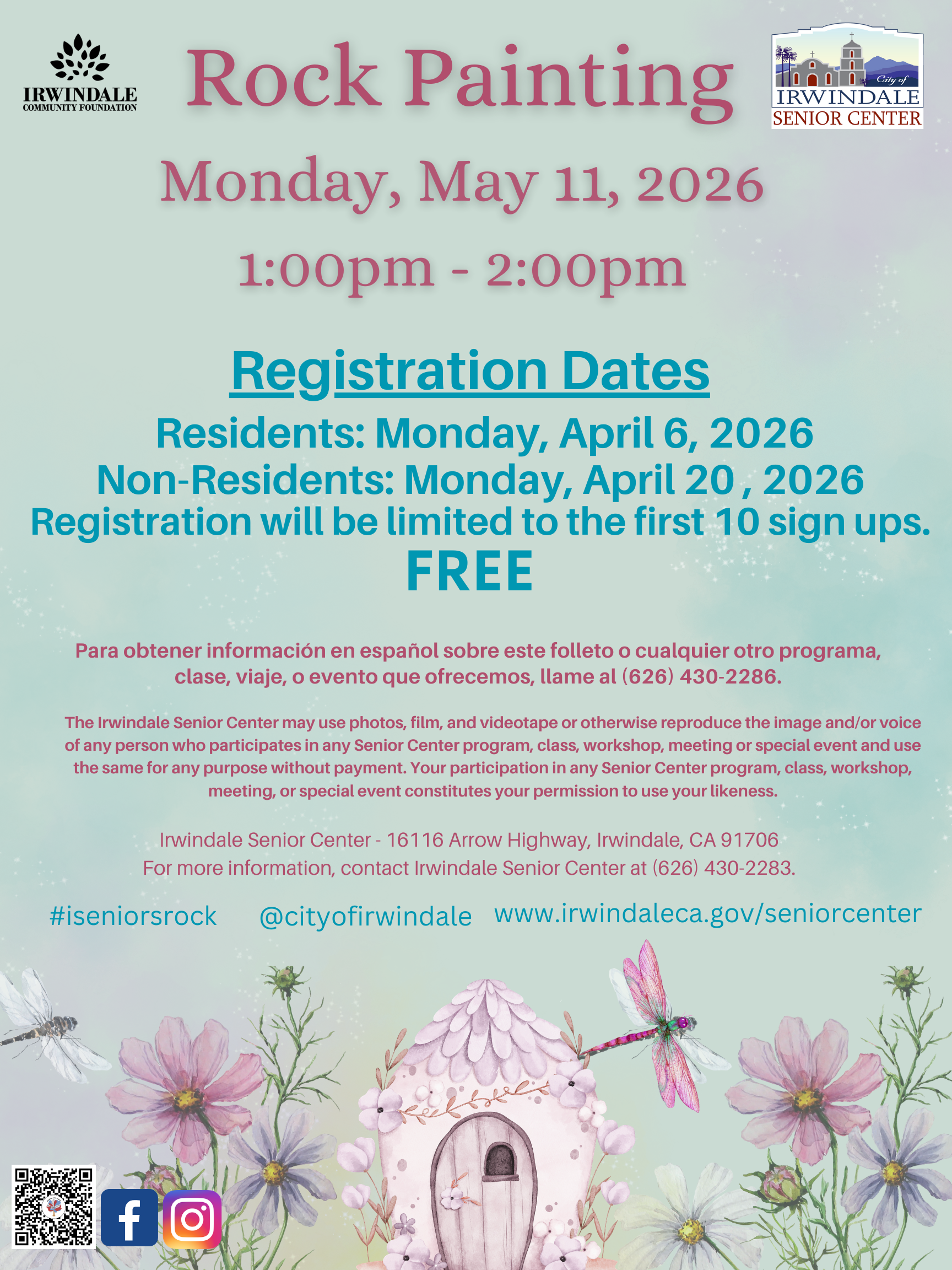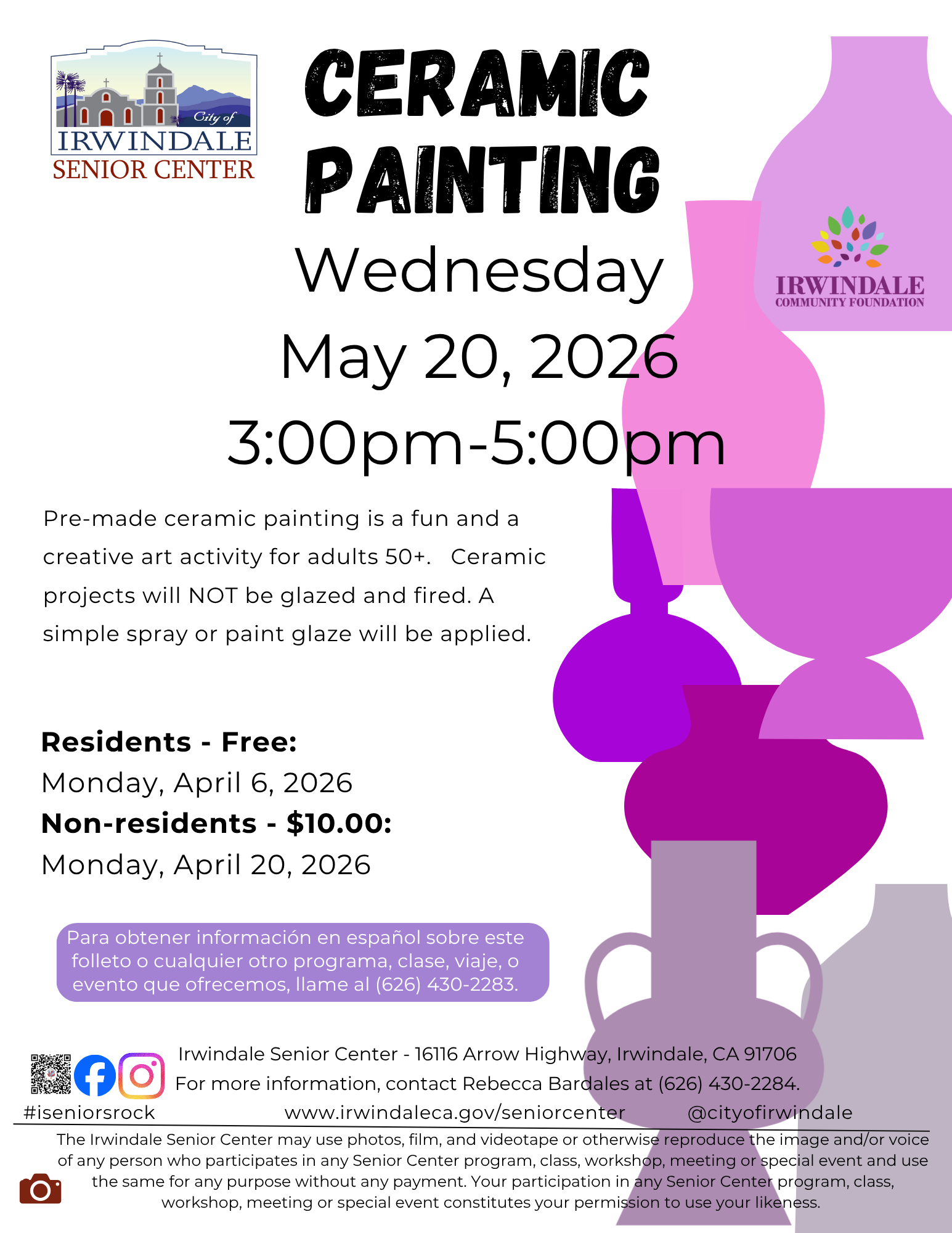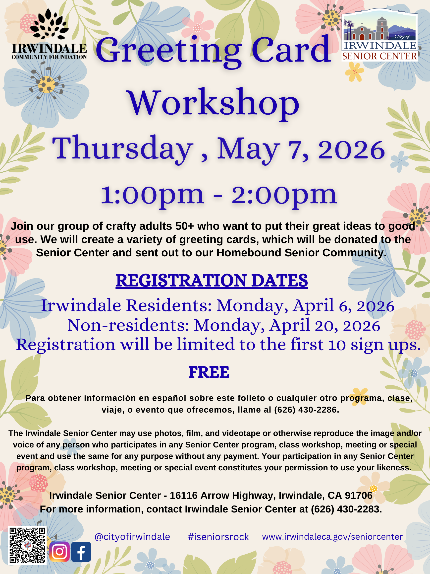 Adults 50+ are encouraged to join the Irwindale Senior Center for a fun-filled hour of crafting.
