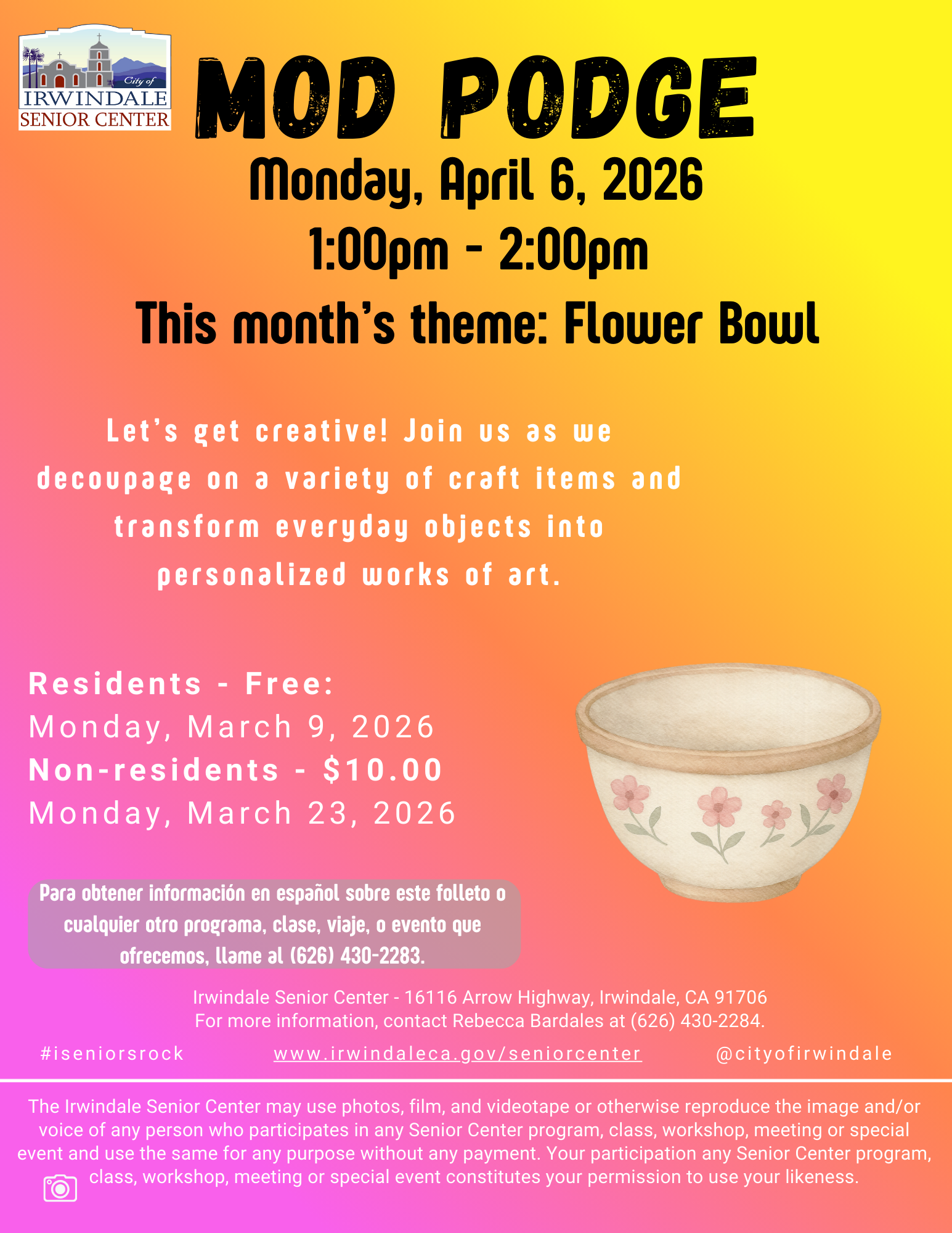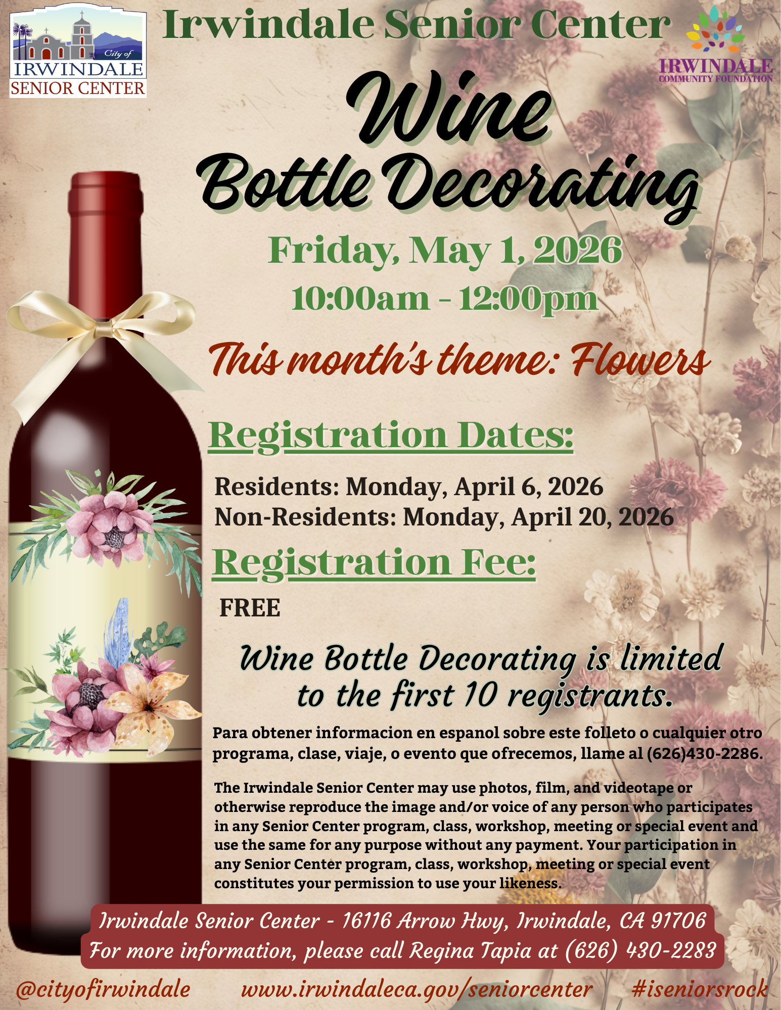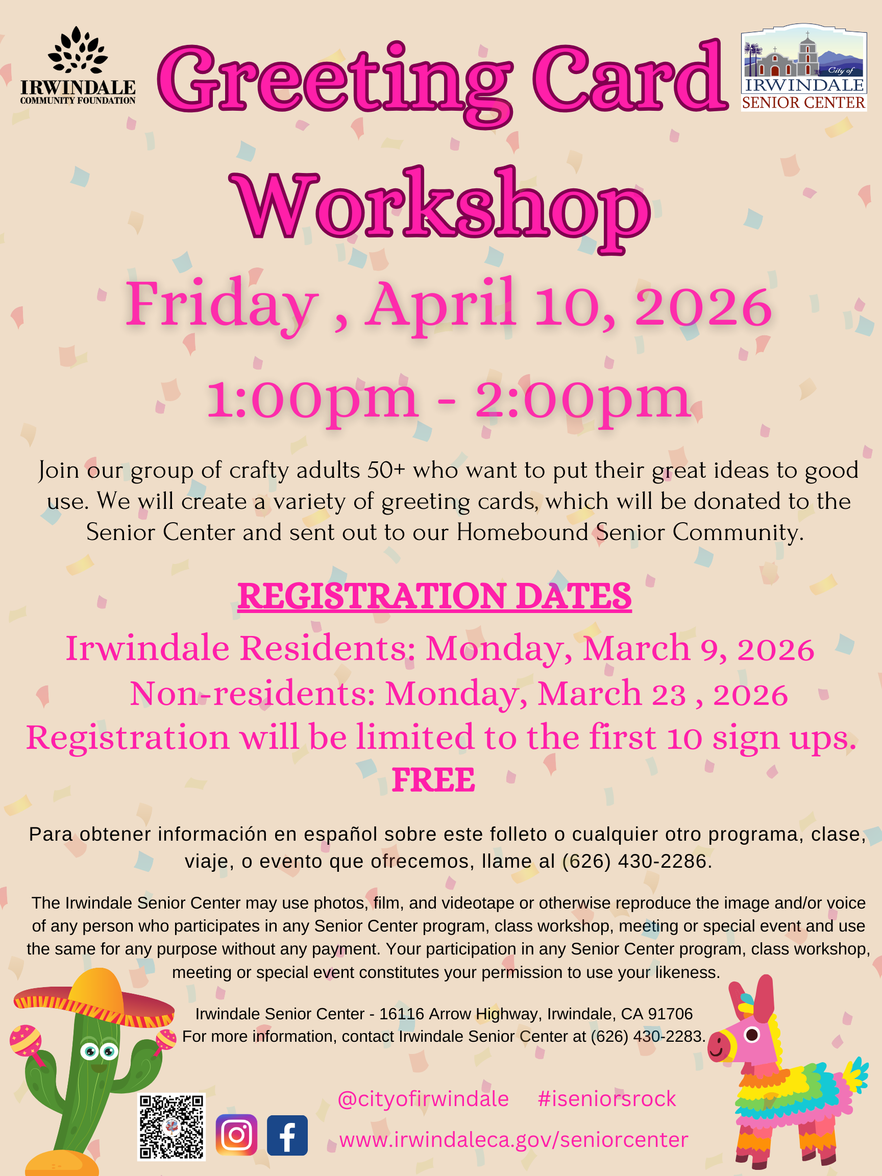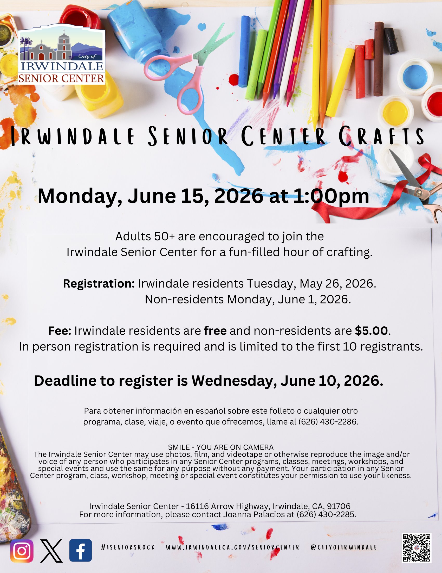 Adults 50+ are encouraged to join the Irwindale Senior Center for a fun-filled hour of crafting.